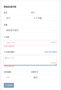 第二步,生成具体内容。子主题处输入第一步生成的标题和关键词,然后生成具体内容。